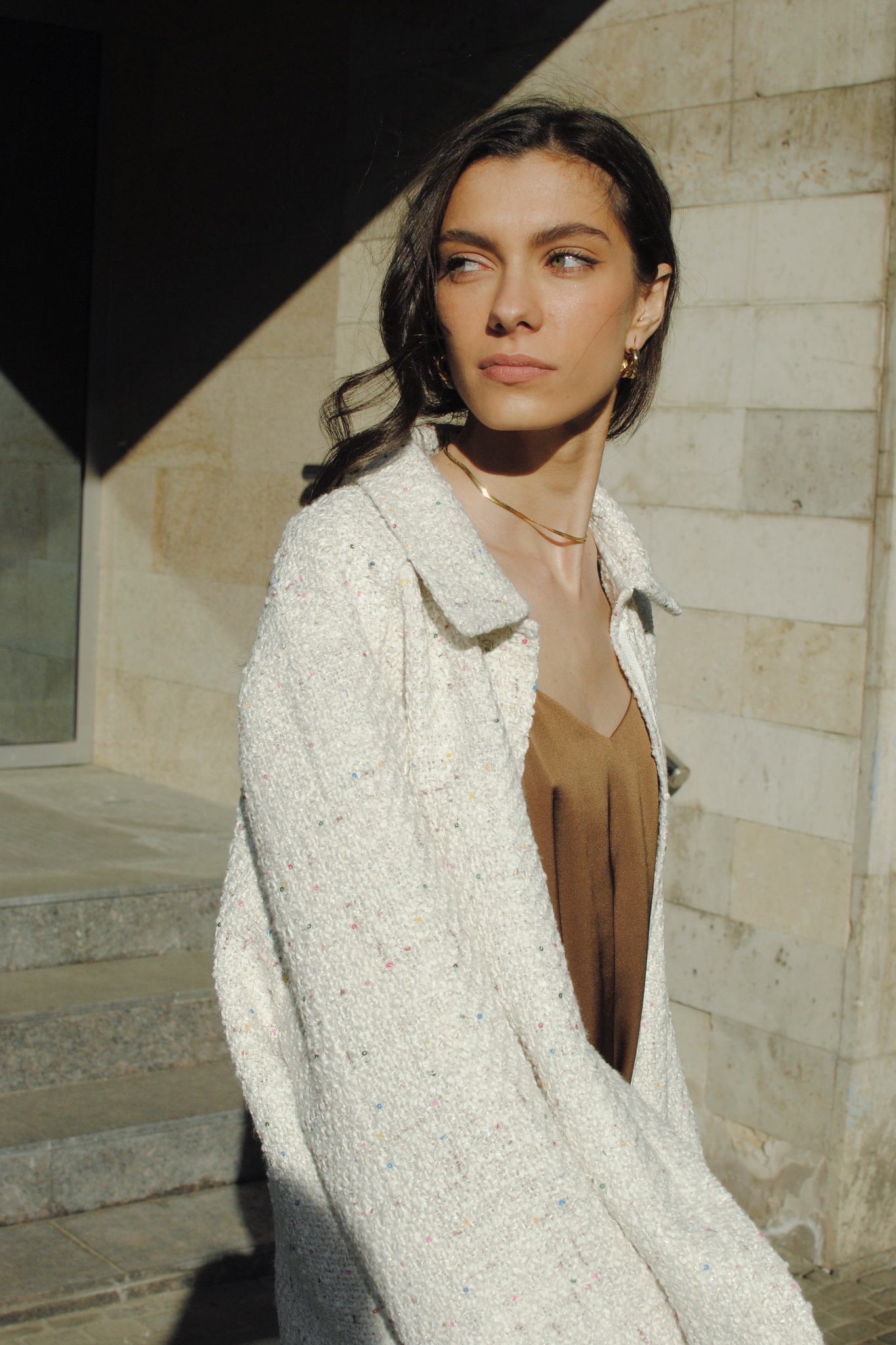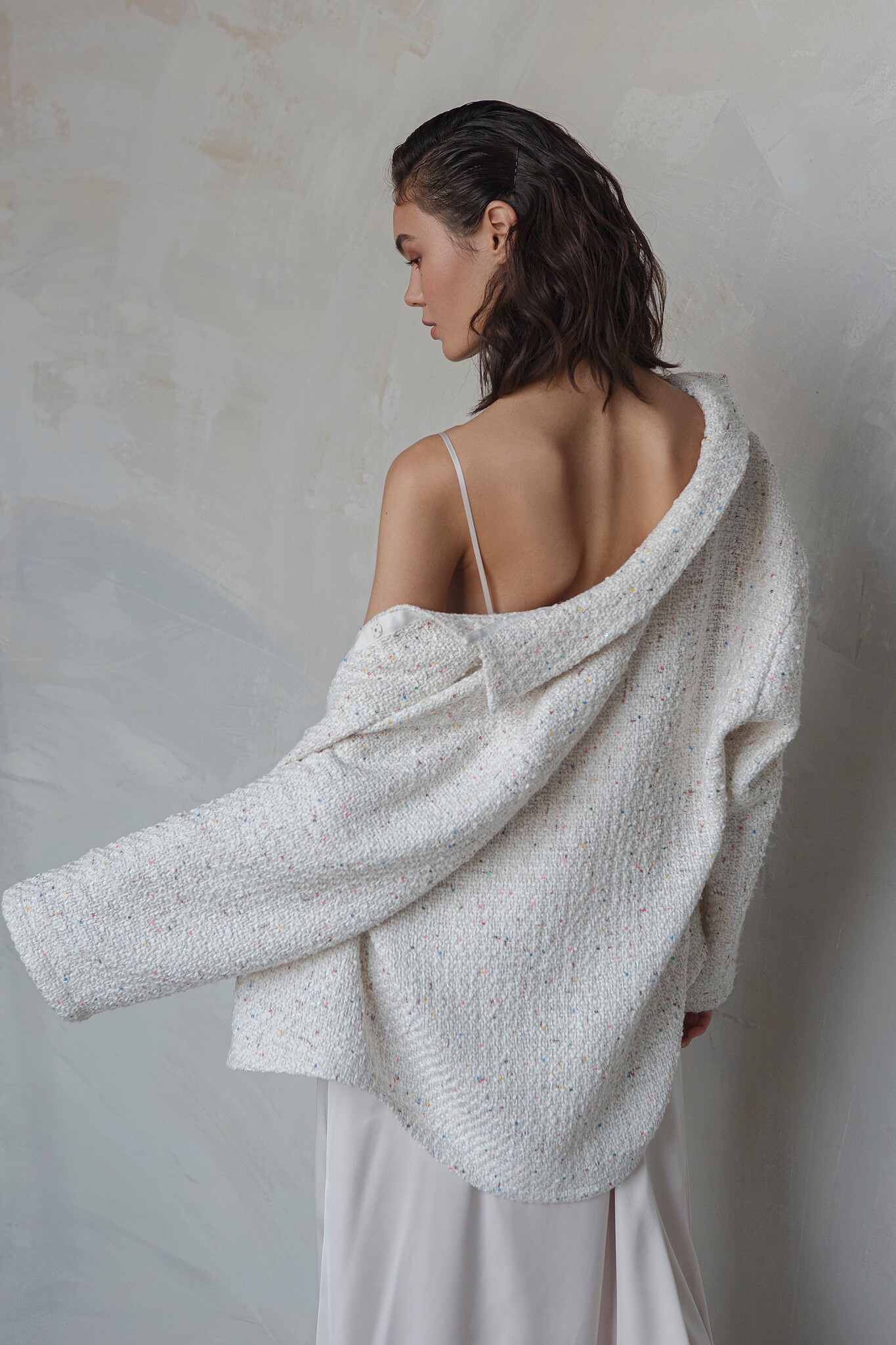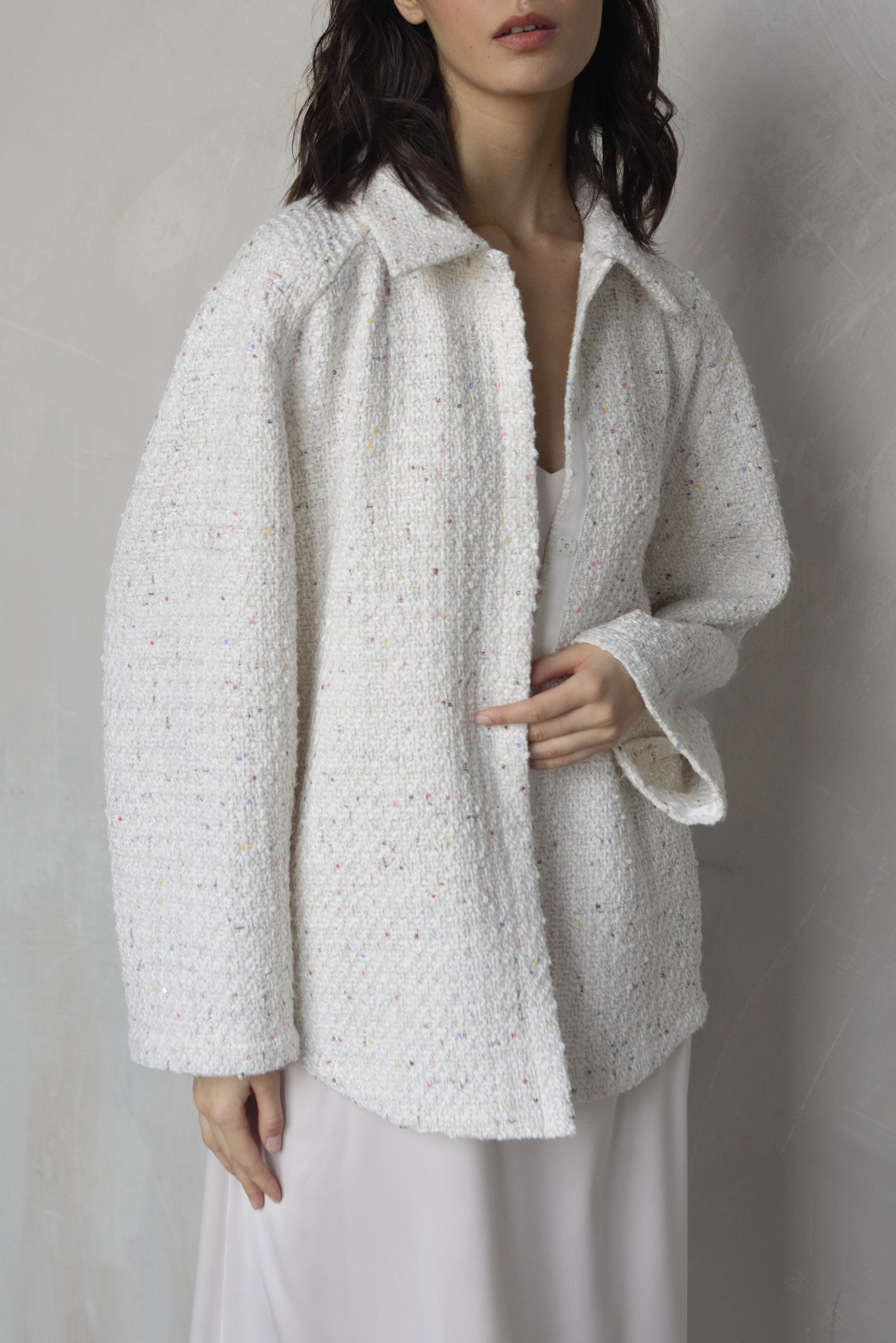 Рубашка из фактурной рогожки с пайетками